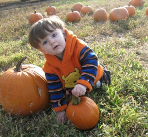 Jonas is my Pumpkin Baby. He was born on a cold day at the end of October. For his first Birthday Party, I decided to have a Classic Halloween event. So all the adult and children could play some classic Halloween/Fall games. This party was very low key. We had lunch catered by Damon’s restaurant. They have an awesome takeout menu, and it really made the day care free. I highly recommend their artichoke spinach dip! We gave out Mrs. Prindable’s candy apples as favors to the Family and Friends who came to celebrate our second son’s special day. It surprisingly snowed the weekend we were hosting his party. So everything had to be indoors. I had the house decorated for Halloween with a few baby’s first birthday farm themed plates and table clothes. One of my favorite decorations was a white pumpkin with Happy First Birthday Jonas and Picture of him decoupaged on.